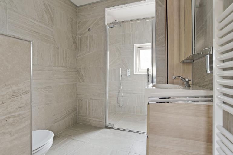 De drie slaapkamers op de eerste verdieping zijn ruim van opzet door de rechte gevels. Tevens bevindt zich op de eerste verdieping een in 2017 gerealiseerde nieuwe badkamer met ruime inloopdouche, zwevend toilet en een modern wasmeubel.
